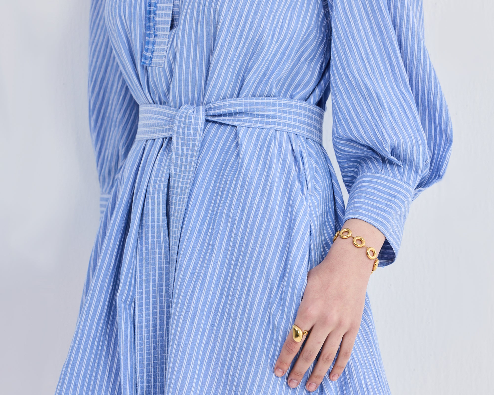 This classic striped shirt dress is made from 100% organic linen featuring cuffed sleeves and an optional belt. It’s chic, comfortable, breathable, and stylish; a go-to piece for work, relaxation, vacation, and all the moments in between!