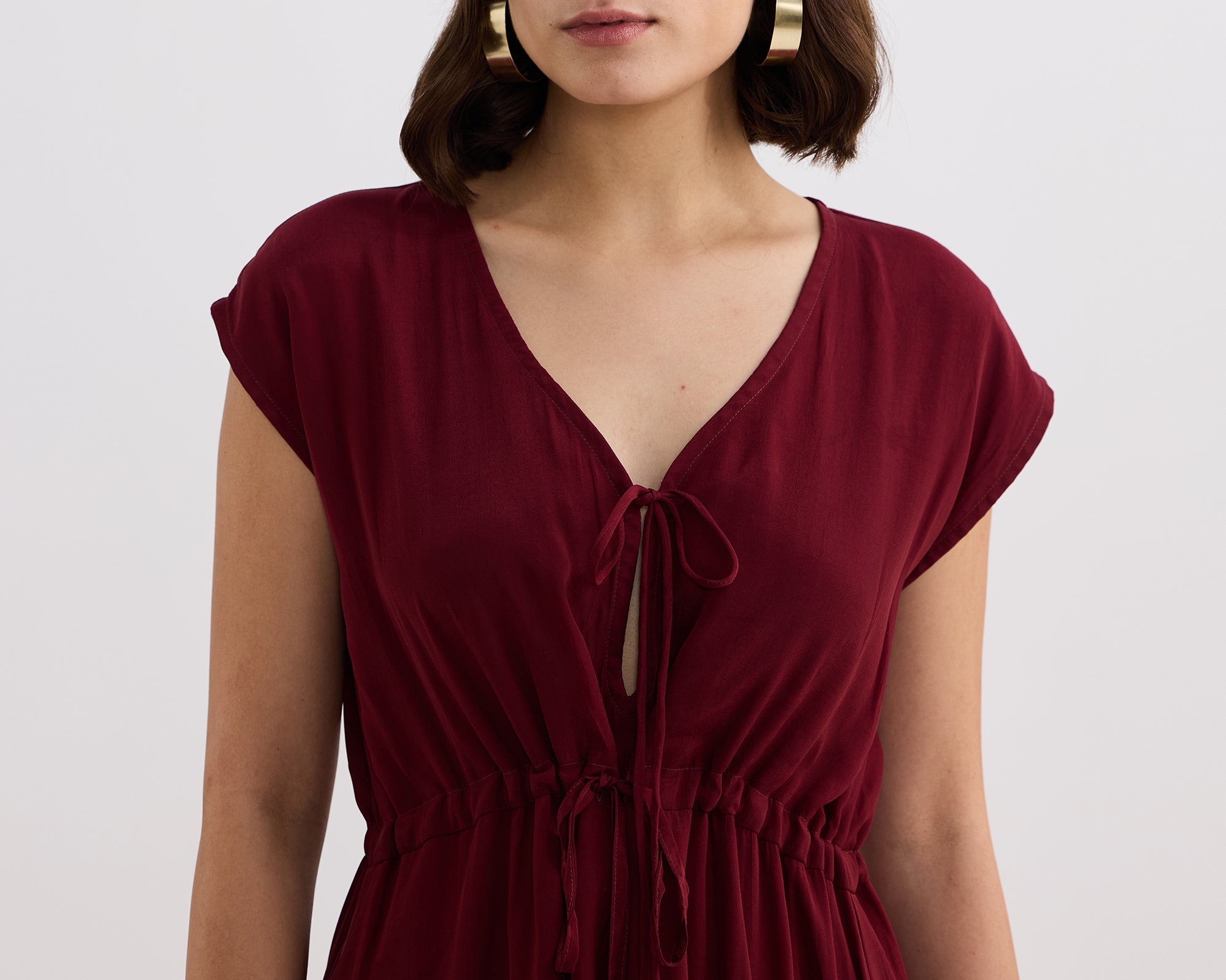 Our deep V-neck gathered dress is the easiest party dress for when you want to look and feel effortlessly stylish and beautiful! It looks lovely with strappy heels and statement earrings - that perfect chic party look. Remember to add a fancy clutch for a dash of bling. When fall arrives, layer with a tailored blazer or denim jacket and wear some ankle boots for that cozy look.