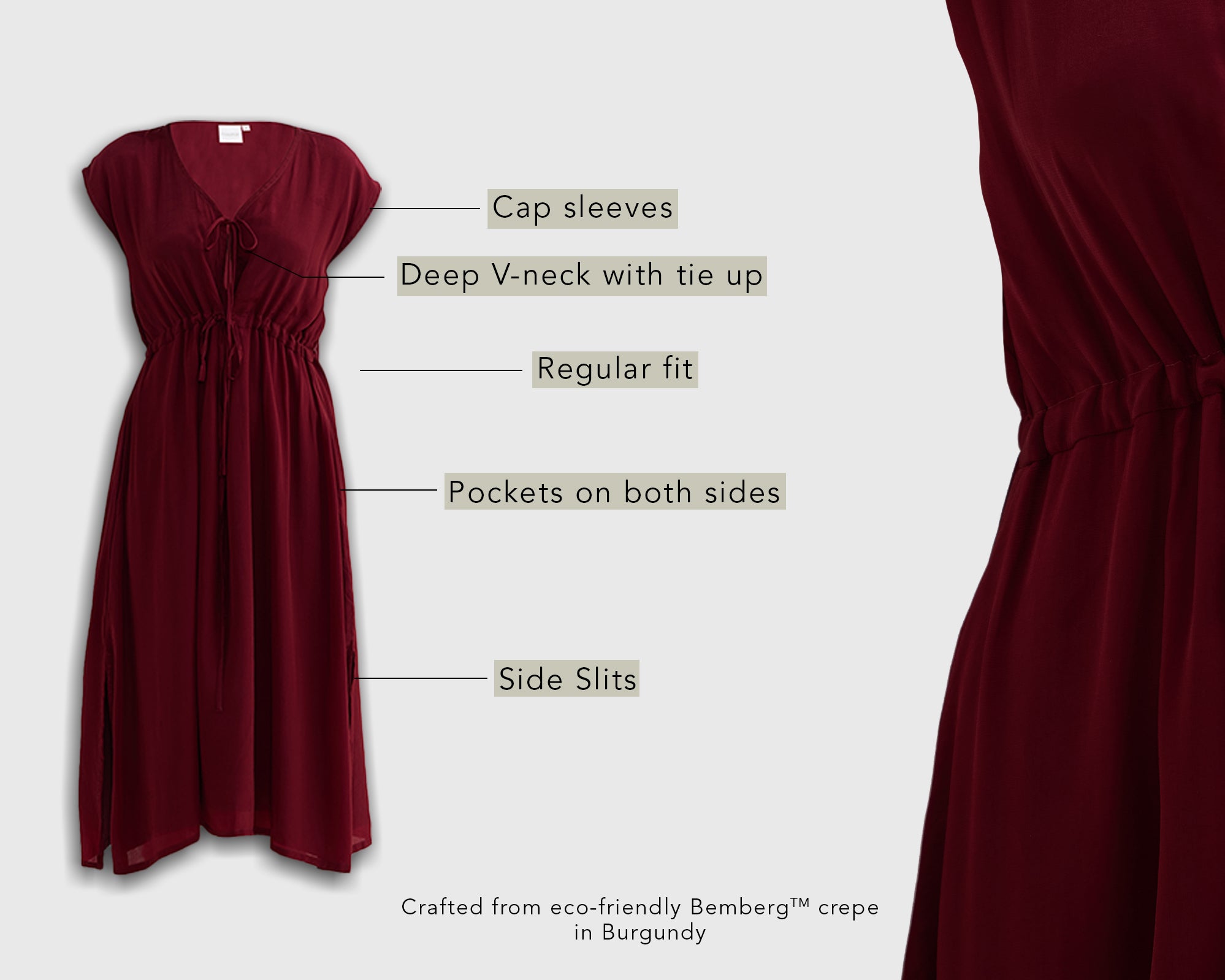 Consciously designed to offer both comfort and style, this pretty dress features front ties, pockets, and a relaxed fit that drapes beautifully on you. The classic mid-length and flowy finish make it perfect for your birthday dinners, parties, date nights, or even the office!