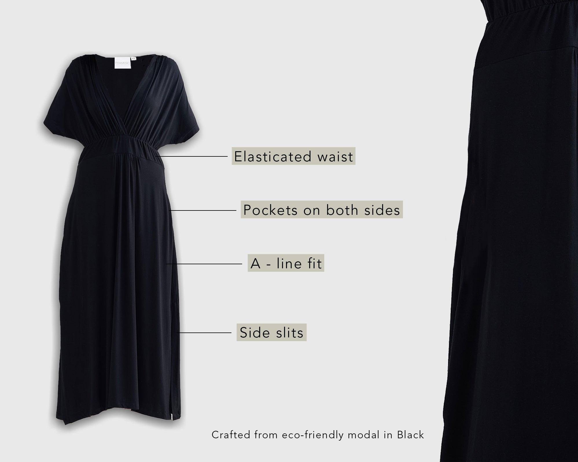 Once you try on this flowy maxi dress, you might never want to take it off! Made from an eco-friendly modal fabric, this classic black piece feels like butter against your skin and looks as good as silk.