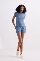 Everyone needs a tee like this. Soft, stretchy and super versatile; pair this Essential Tee in blue with our matching shorts or something from your own closet.