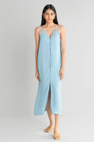 It's so easy to dress this slip dress up or down! Simply add heels and a belt or sneakers and a top knot to suit your style. The adjustable strap and slit in front add classic details we love.