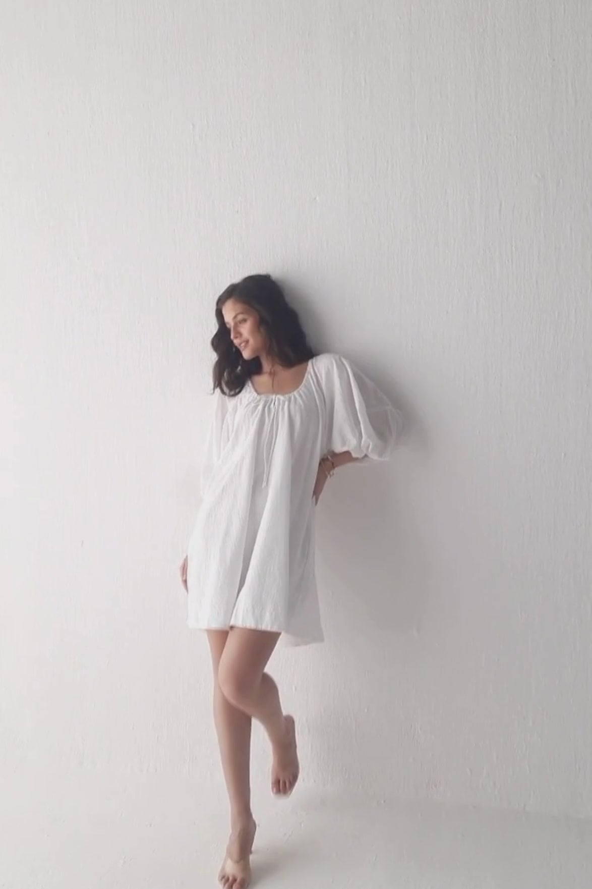 Made from 100% eco-friendly cotton, this chic white dress is lightweight, breathable, and easy on the skin. This piece is thoughtfully made with intentional details like a drawstring neckline, puff sleeves, and a relaxed short length for comfort and airflow. Functional side pockets add ease, while the classic silhouette keeps it stylish, easy, versatile, and vacation-ready.