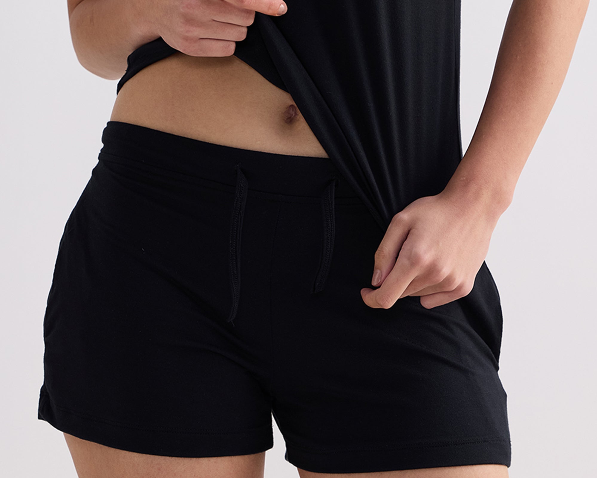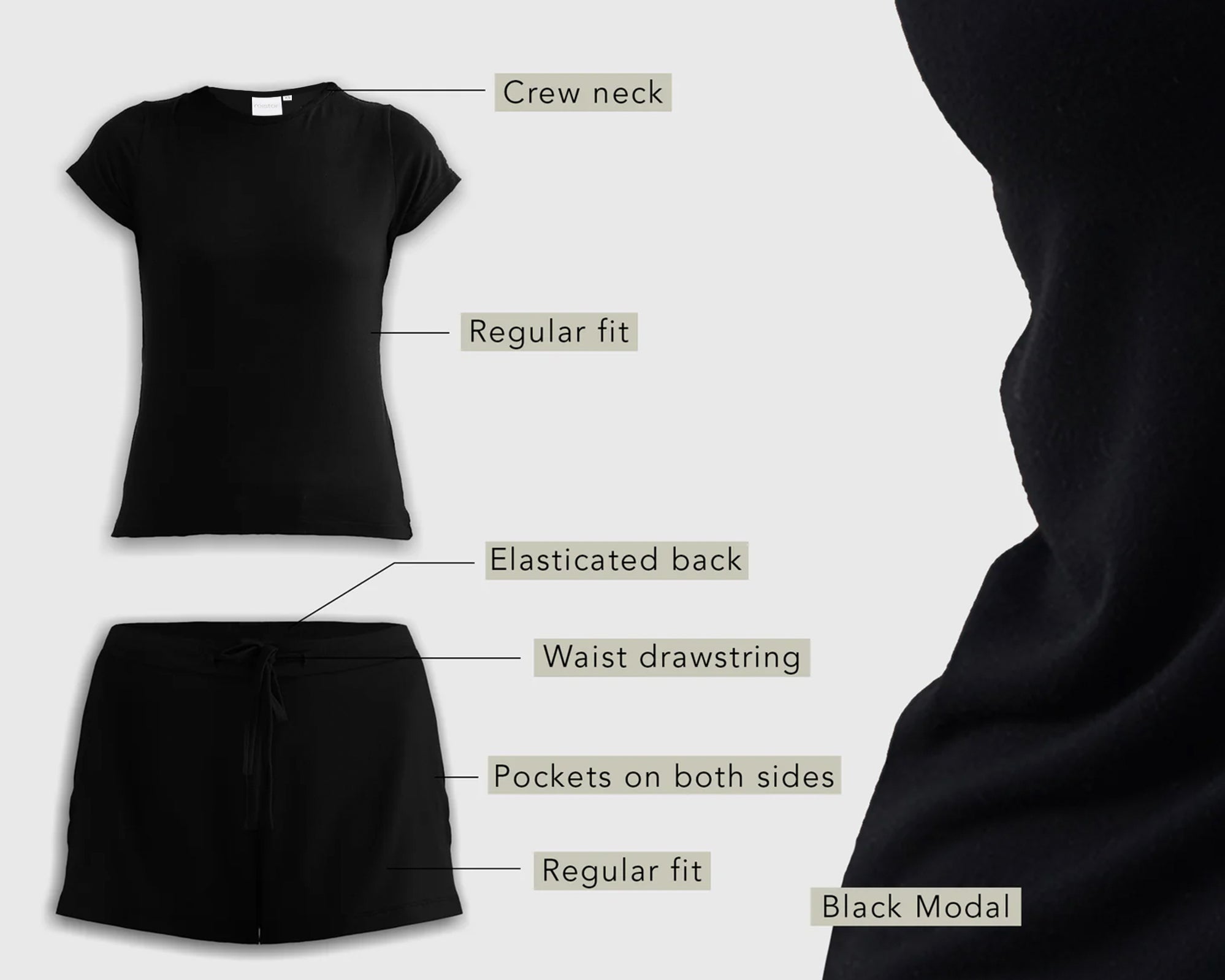 Soft, stretchy, and effortlessly versatile, this short-sleeve tee paired with knit shorts is designed for all-day comfort and effortless style, whether you're lounging at home or running errands.