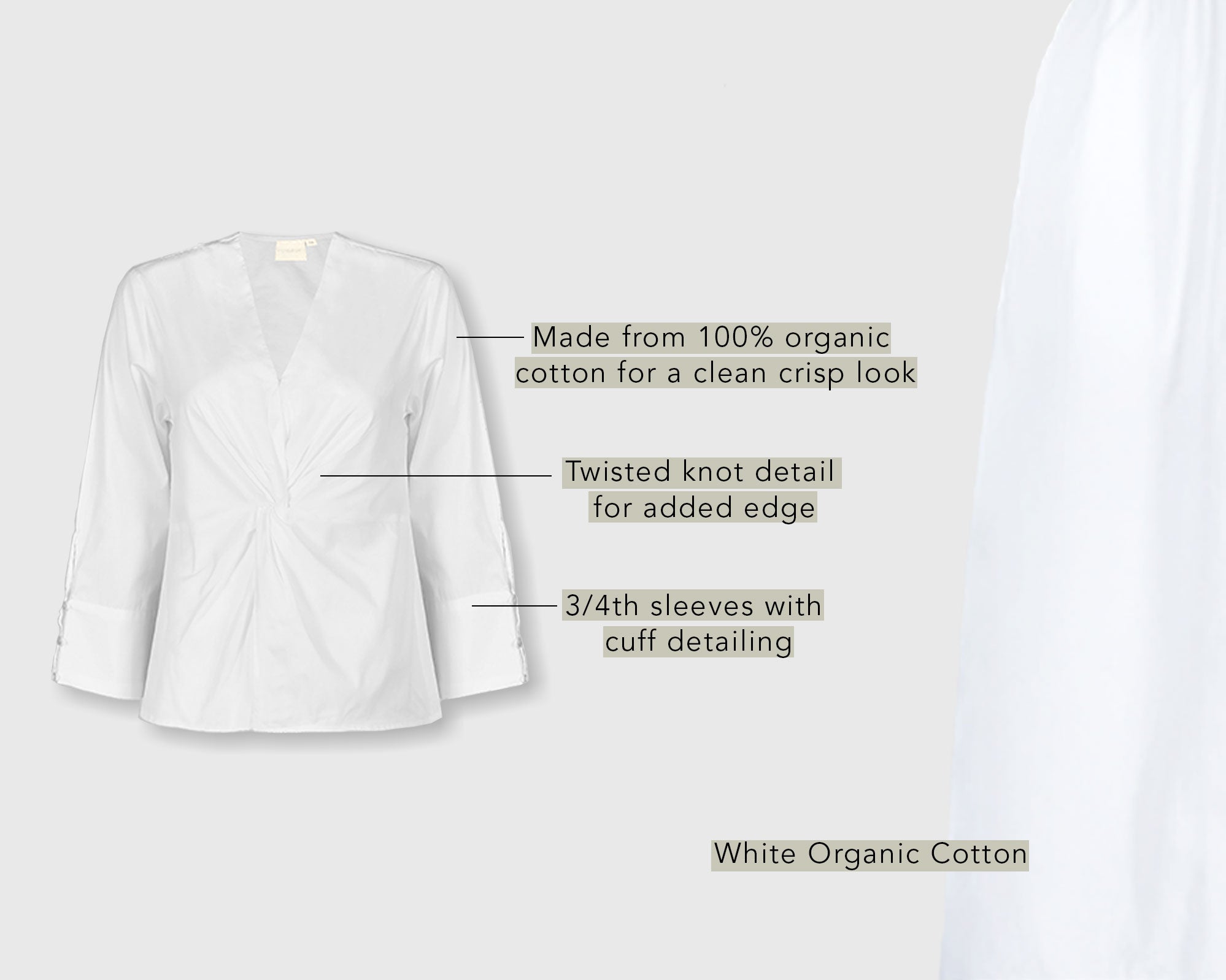 This Front Twist Coconut White Top is made from organic cotton poplin to give your day a crisp, clean look. The gentle twist and full sleeves complete the shirt.