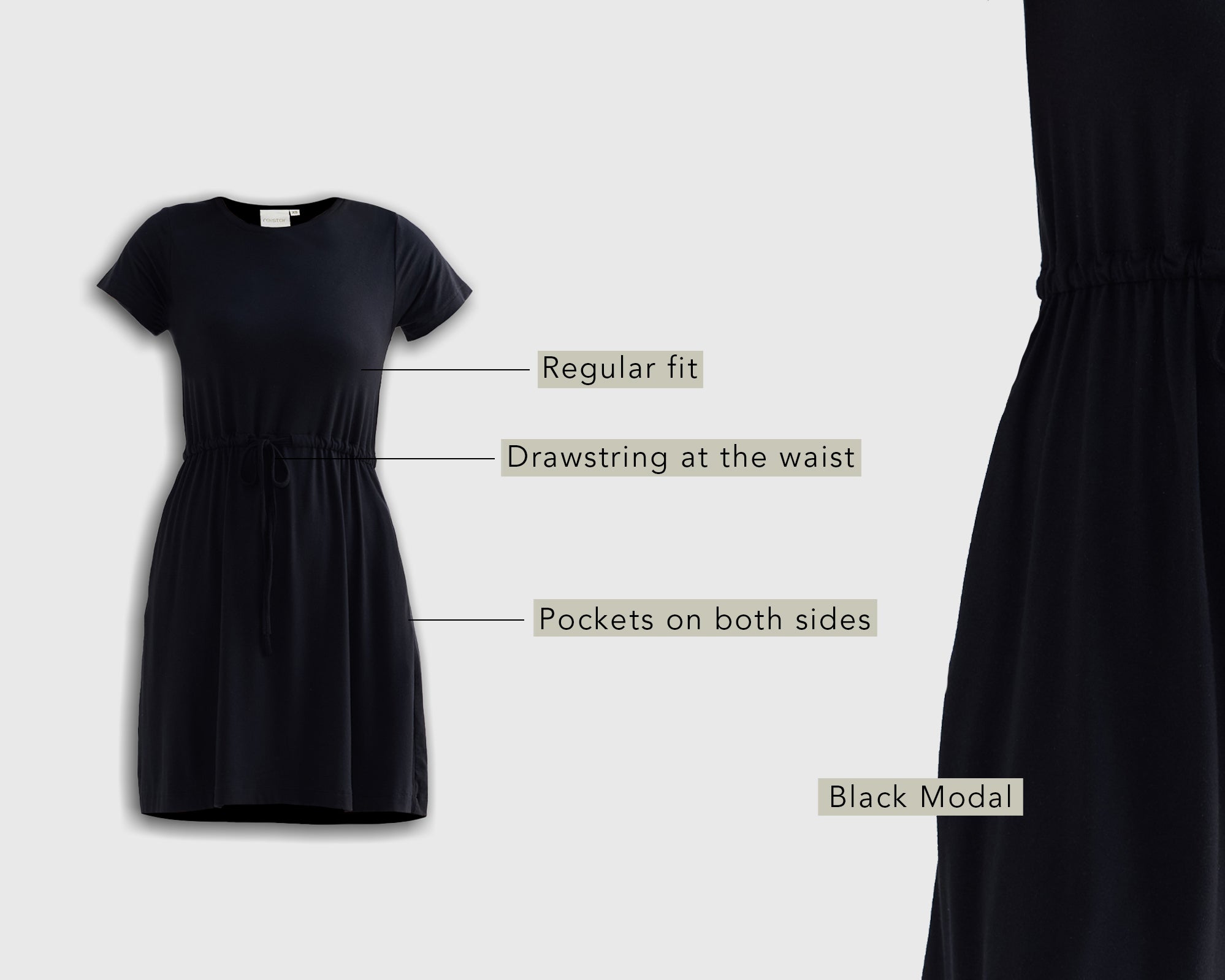 Easy to wear any day of the week, the adjustable drawstring and silky soft fabric make this black T-shirt dress so comfortable as well! The side pockets blend functionality with style, allowing you to breeze through your day.