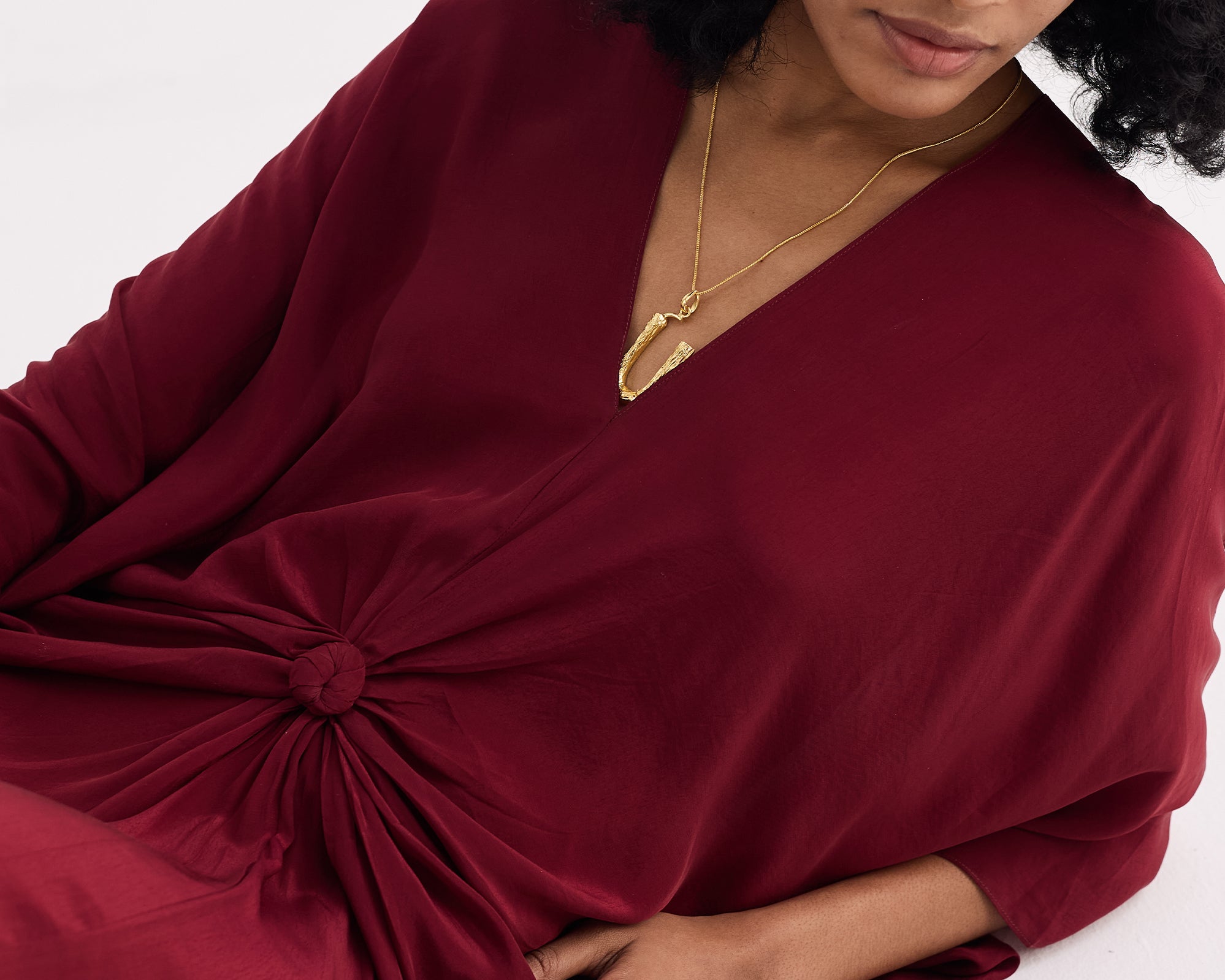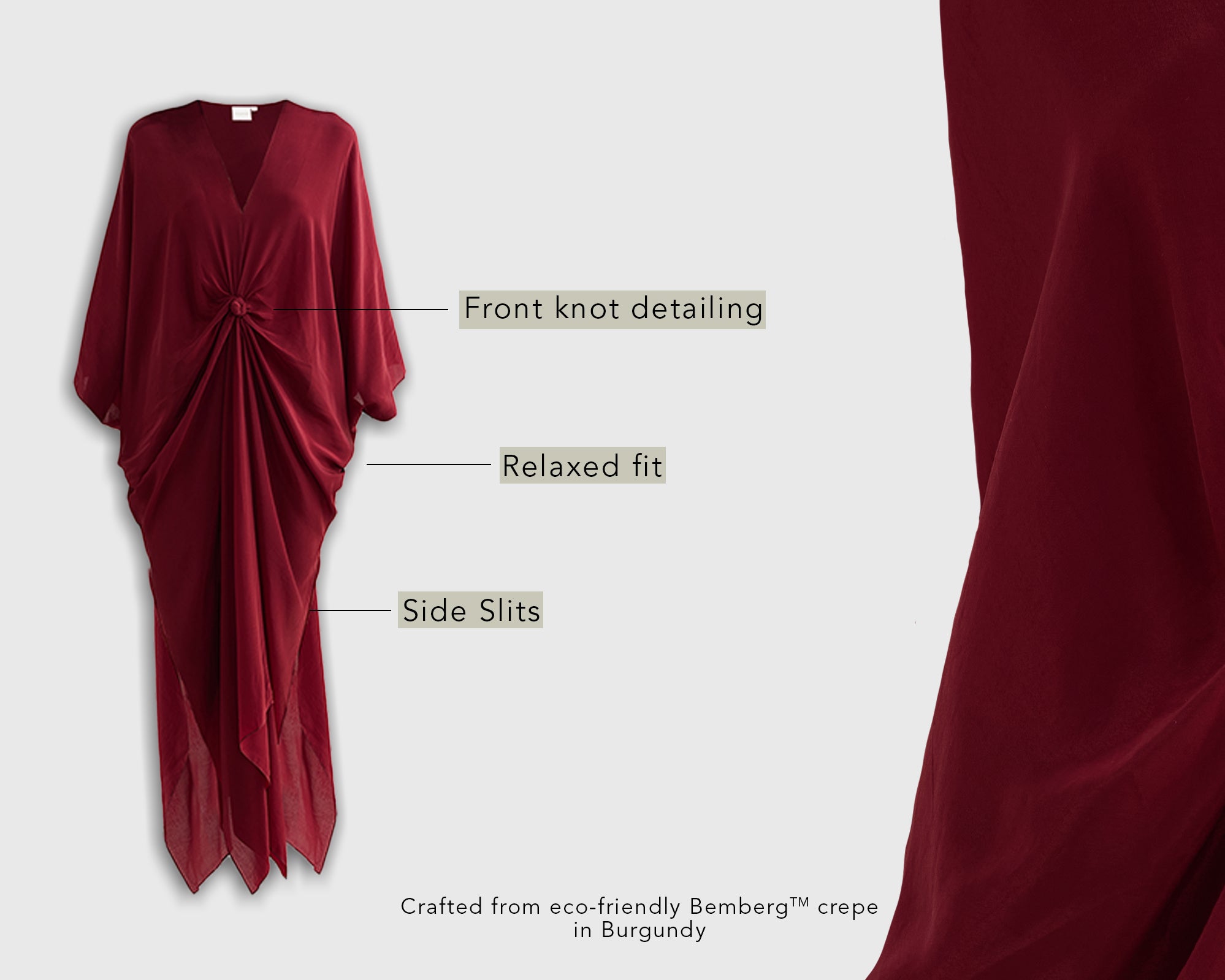 Front Twist Kaftan Dress in Burgundy