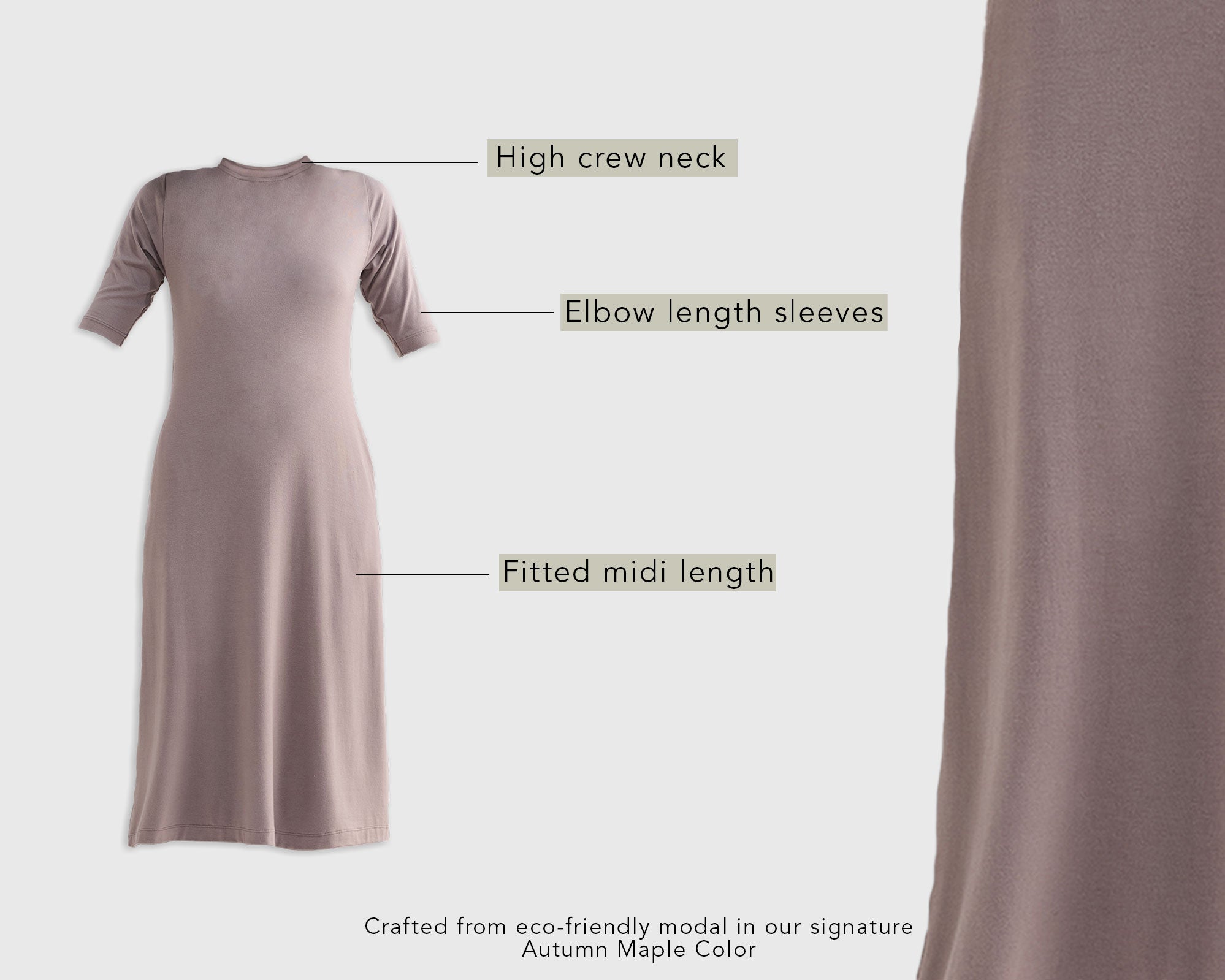 High Crew Neck Elbow Sleeves Fitted Dress in Earth Grey