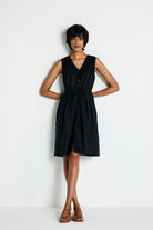 With a relaxed V-neck, this drawstring dress can be cinched at the waist to suit your comfort. Hidden in-seam side pockets make it more functional.