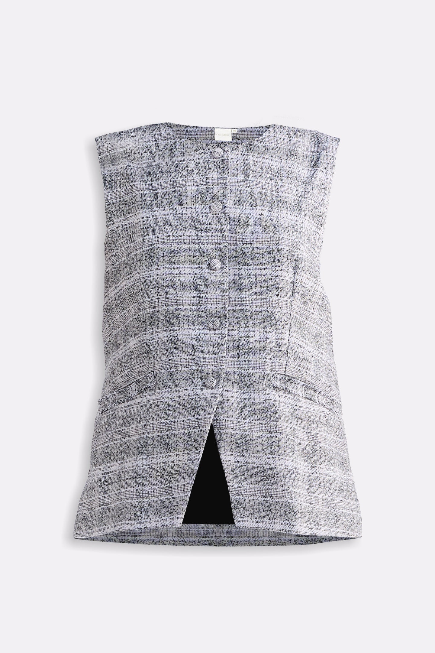 Whether you’re heading to a business meeting or a casual outing, this sleeveless jacket is your go-to choice for effortless style. The sleeveless finish and front pockets combined with a complete button closure give it quite a classic appeal. Pair it with our matching Cotton Tweed Shorts for the ultimate stylish look.