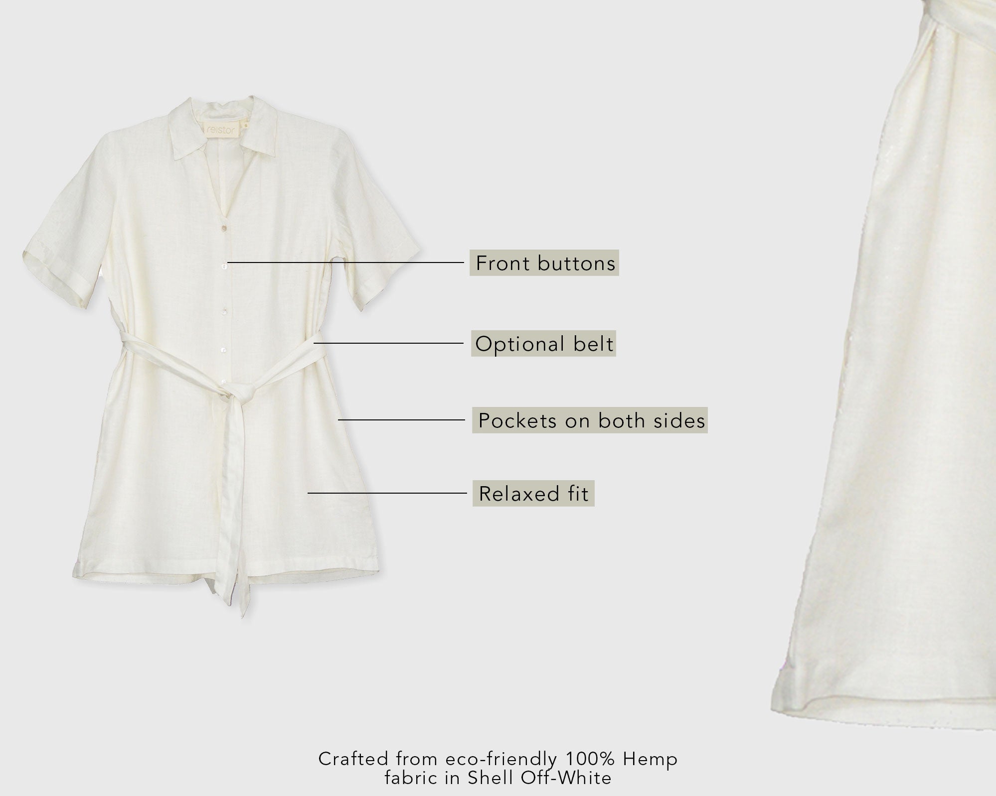 A casual yet sophisticated romper, made from 100% hemp this garment is super comfortable and easy to wear.