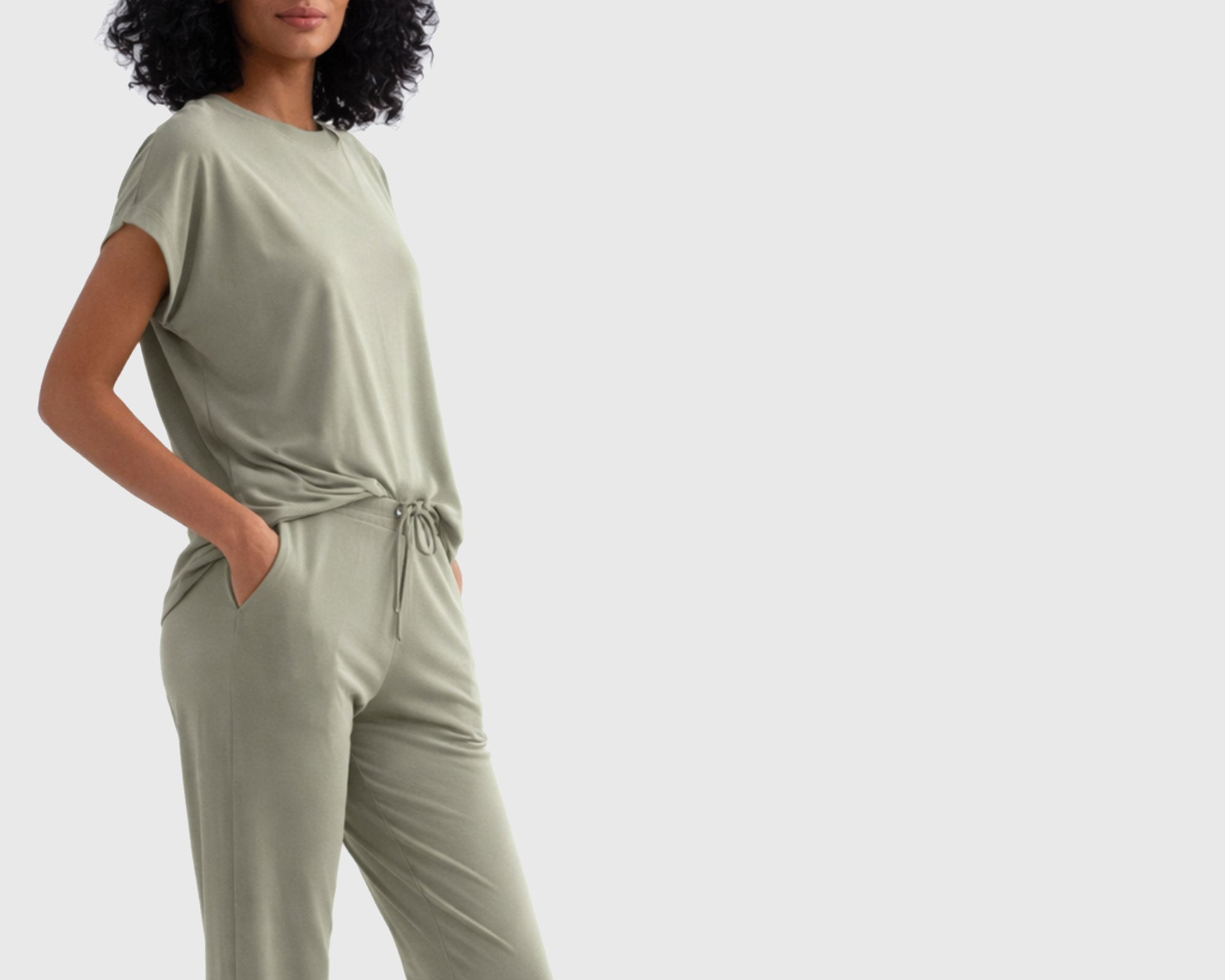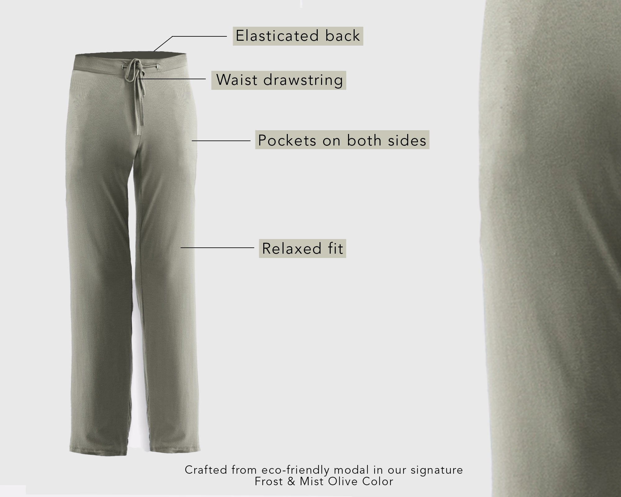 Crafted from smooth, eco-friendly modal fabric with just the right amount of stretch, these relaxed pants in olive green are stylish, easy, flowy, and comfortable. The fit moves with you, making them perfect for travel days, lounging, errands, or slow mornings. Wear these olive green pants with the matching tee or style them your way with your closet favorites.