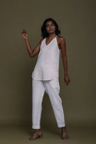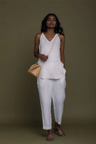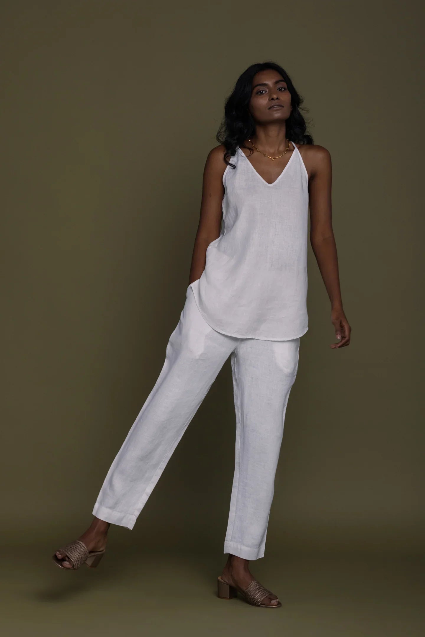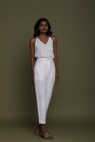 With a drawstring waist and a discrete button fly, these straight-leg tapered pants with a high waist have a relaxed semi-fitted look.