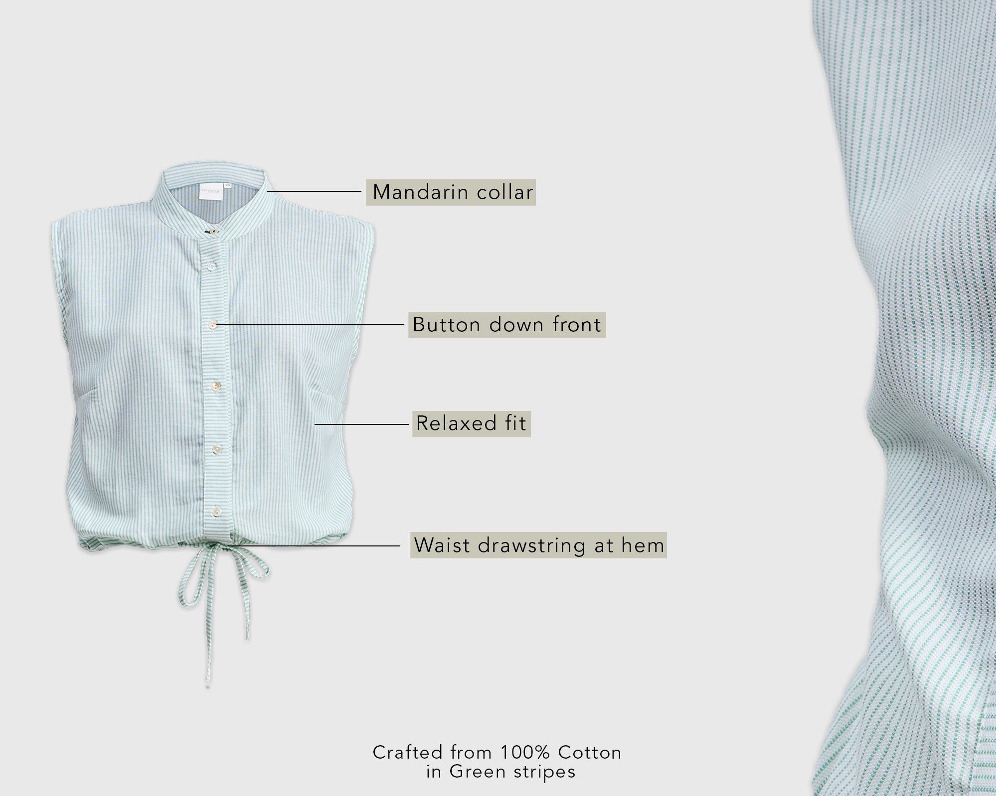 This striped, relaxed-fit top features a mandarin collar and a drawstring hem, offering a stylish yet comfortable fit. Made from 100%  cotton, it’s perfect for vacation, or everyday lounging. The breathable fabric and timeless design make it easy to style for your everyday.