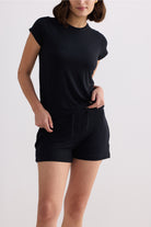 Elevate loungewear with these short, eco-friendly shorts in black that are super comfy and oh so soft. Pair them with our matching tee or one of your own.