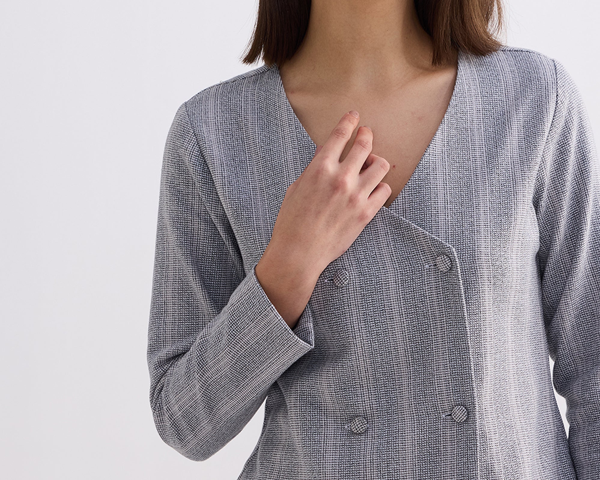 Constructed from soft eco-friendly cotton tweed fabric, this jacket combines durability with a luxurious feel. The classic V-neck, long sleeves, and front overlap buttons ensure you always look stylish and feel your best no matter where your day takes you.