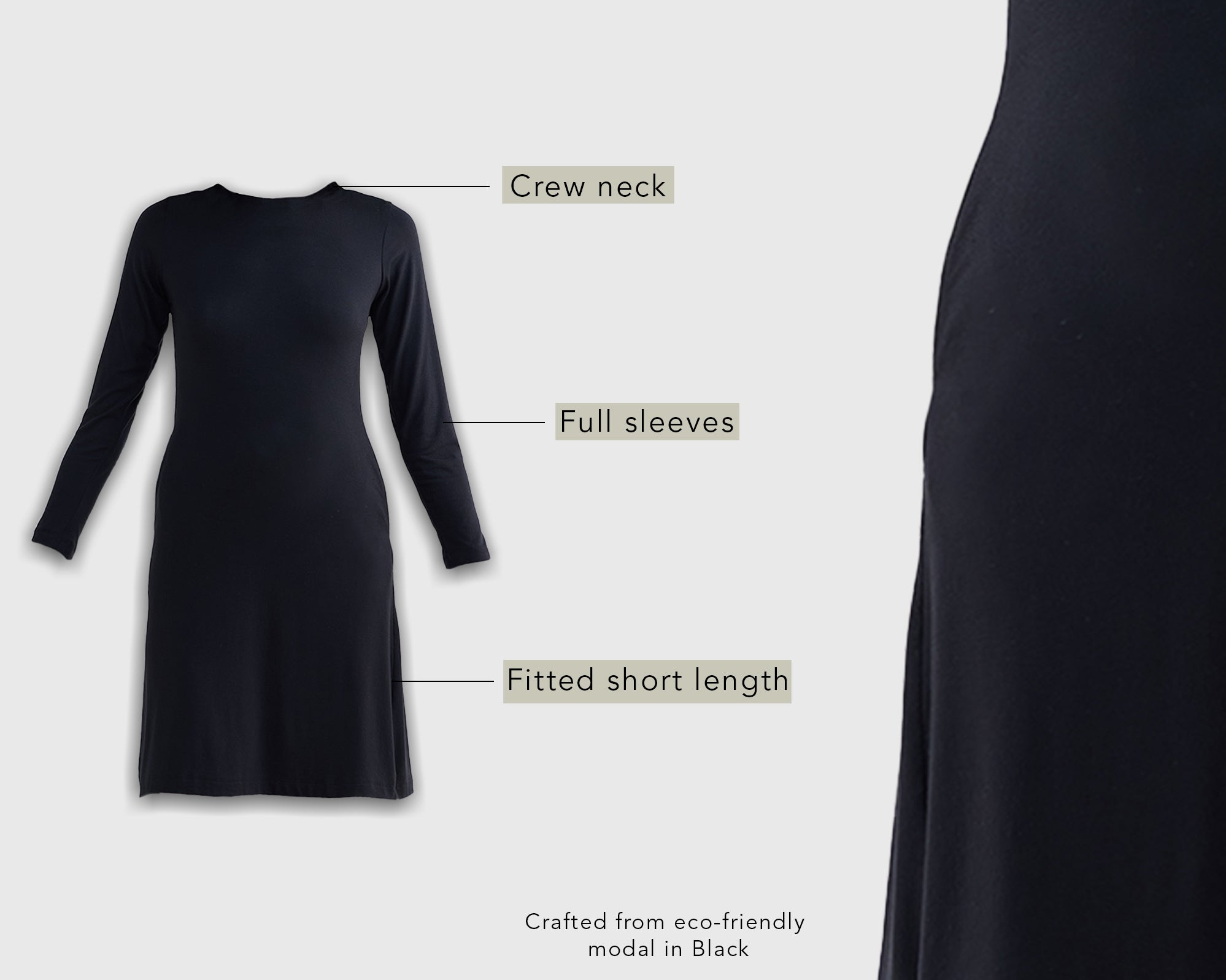 Flow through your day in this full sleeved modal dress that feels super soft and silky against your skin. A lightweight knit, this dress is great for layering.