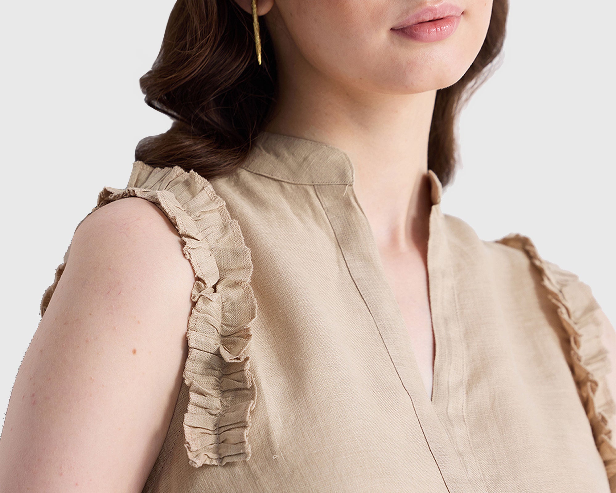 Sleeveless Hemp Top with Ruffles in Neutral Beige