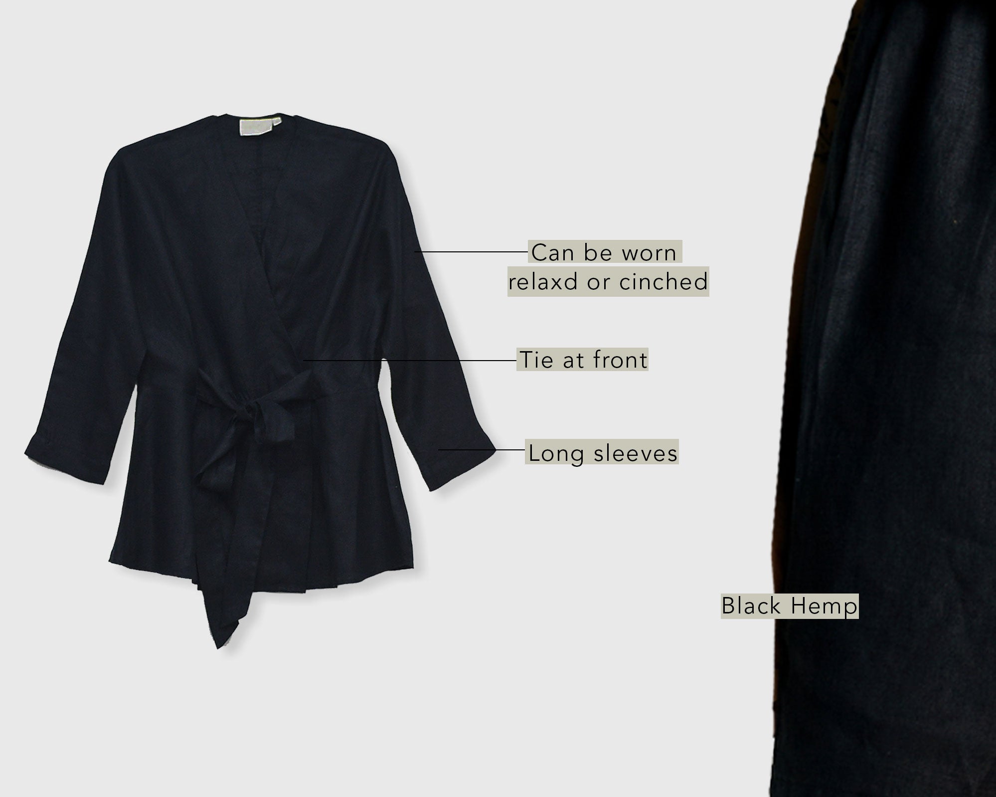 A bestseller! Double this 100% hemp shirt as a jacket or layer it on depending on how you feel. The tie up at the waist cinches to give your look added structure and style.