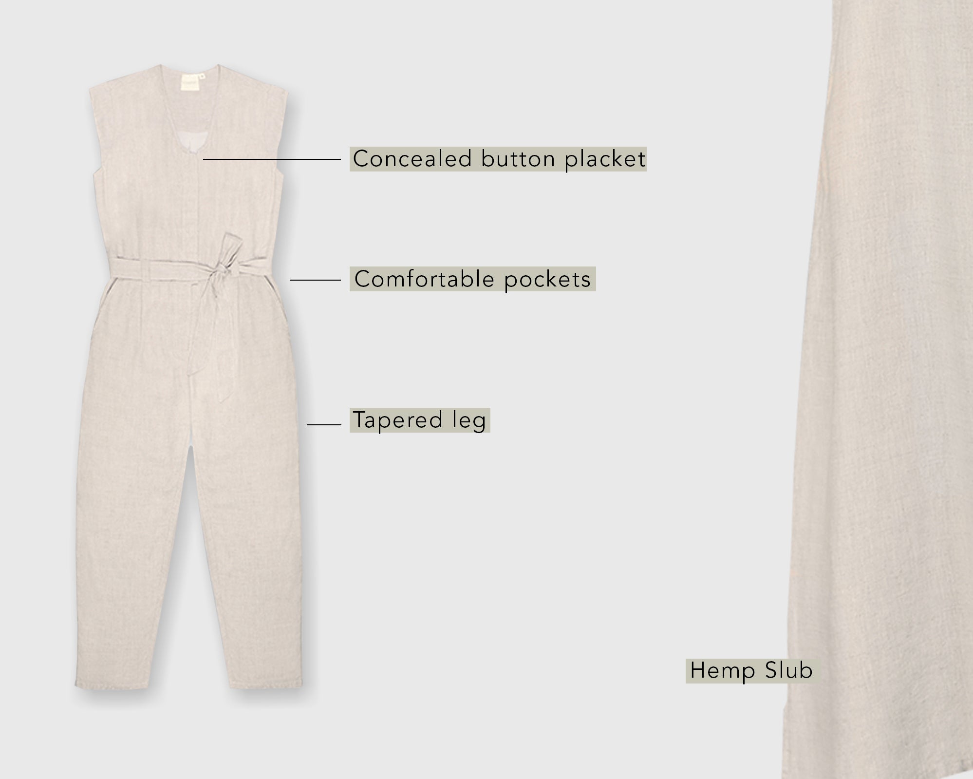 Get brunch ready with this modern light beige V-neck jumpsuit with micro sleeves and straight-cut legs for a voguish look day or night! The breathable hemp fabric ensures all-day comfort, while the tailored silhouette is edgy and flattering.