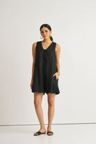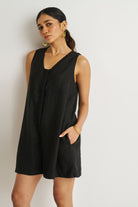 This cute Romp And Play Romper is an absolute summer-essential owing to its relaxed, airy fit and breathable hemp fabric. The classic black color gives it a solid neutral base for countless ways of styling. Signature pin tucks along the placket add sophistication, while functional pockets on both sides provide practicality without compromising style.