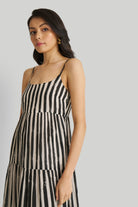 Strappy Tiered Maxi Dress in Black Stripes