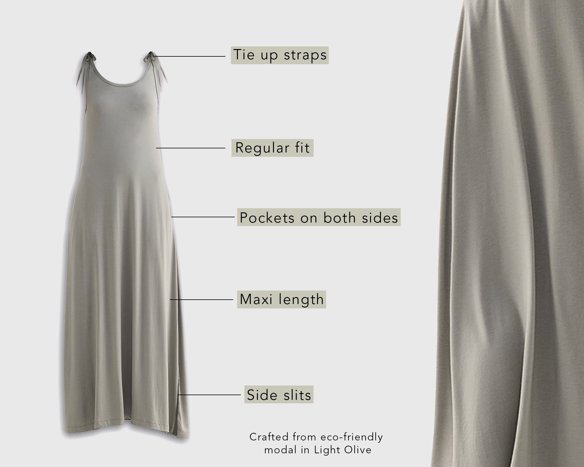 Designed for both comfort and style, this light olive maxi dress features a relaxed fit that drapes beautifully, ensuring you feel as good as you look. The maxi length adds a touch of elegance, making it perfect for any occasion.